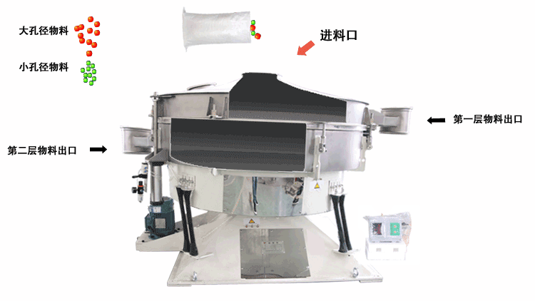 超聲波搖擺篩的基本回轉運動與人工篩分相似,偏心率從25到40mm可調,低速V型皮帶驅動從120到360rpm可調。每一種產品的停留時間可以通過振泰系列搖擺篩的徑向與切角朝驅動軸線方向進行調整。因此建立水平與拋擲三維翻滾運動。物料從中心到外緣在整個篩面上均勻分散,從而以螺旋運動往軸向傳播。細小顆料從而完成了整個篩分過程。