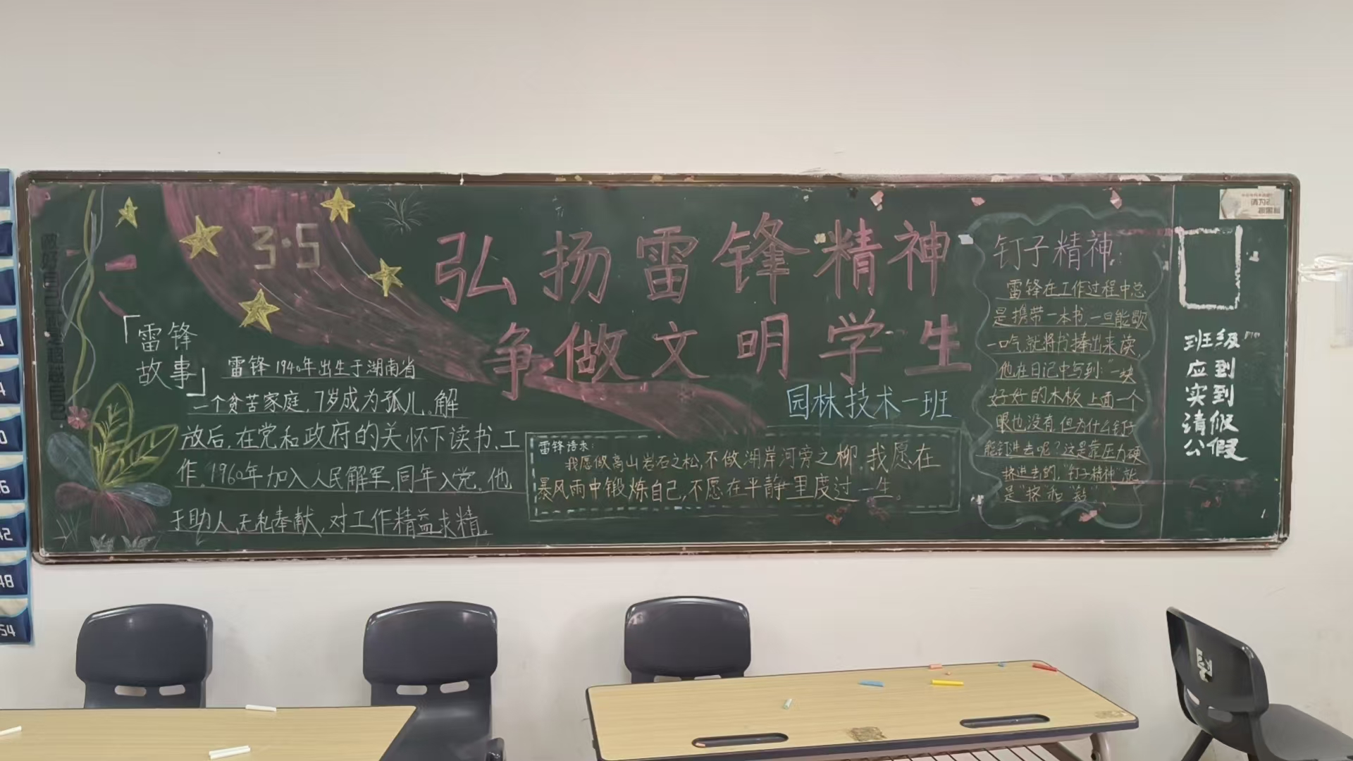 该团总支还组织各班级利用黑板报阵地,精心策划雷锋主题板报创作。同学们集思广益,用生动的文字、精美的插图展现雷锋生平事迹、经典语录和新时代志愿服务风采。一块块主题鲜明、内容丰富的黑板报成为班级文化建设的亮丽风景,营造了"人人学雷锋、人人做志愿者"的浓厚氛围。