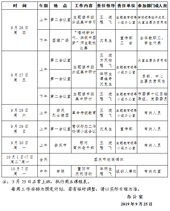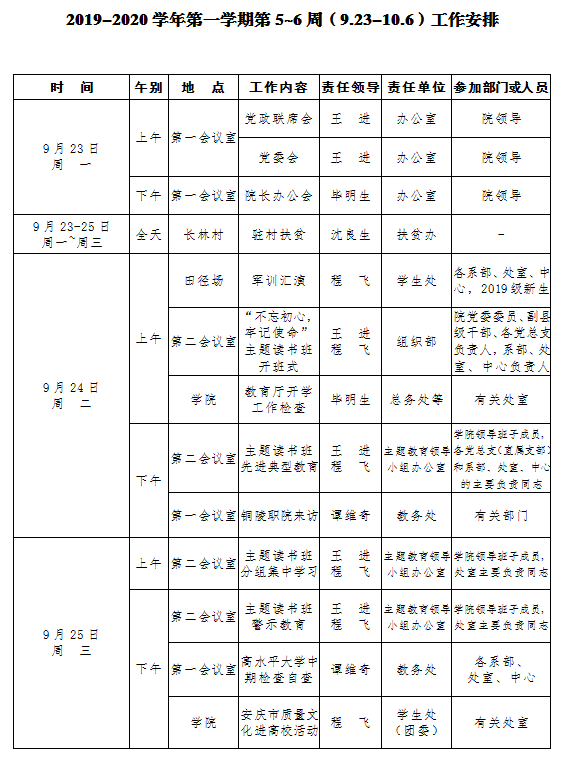 2019-2020学年第一学期第5~6周(9.23-10.6)工作安排