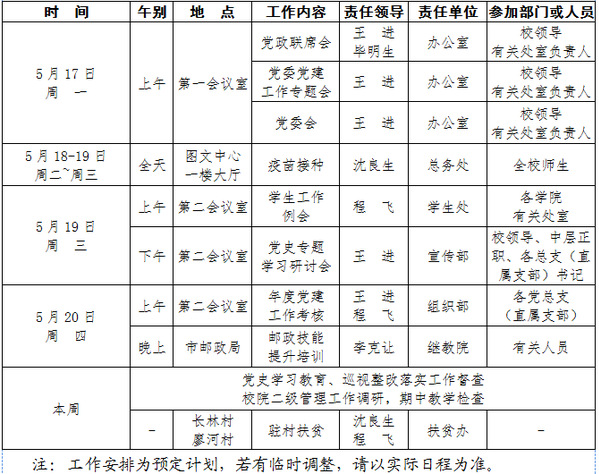 2020-2021学年第二学期第12周(5.17-5.23)工作安排
