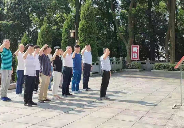 在潜山烈士陵园,全体党员深切缅怀了为潜山解放而英勇牺牲的革命先烈,并了解了革命火种在潜山燎原的过程。党委书记王进带领全体党员在“人民英雄永垂不朽”纪念碑前,重温入党誓词,表达对革命先烈的无限崇敬。