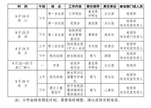 2021-2022学年第一学期第4周(9.18-9.26)工作安排
