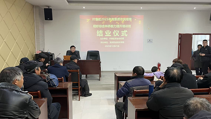 12月21日,叶集区2025年高素质农民培育稻虾综合种养能力提升培训班在叶集开放大学举行结业仪式,标志着为期一个月的系统培训圆满完成。本期培训通过理论教学+基地实训+成果考核的培育模式,为全区稻虾产业培养了一批技术骨干。