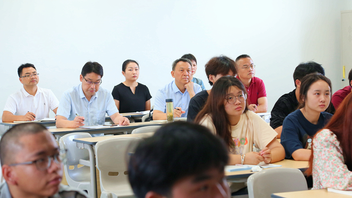 校领导走进课堂,仔细观察教师和学生上课状态,全面把握教情和学情,与学生共同度过新学期第一课。校领导聚精会神地听课,并不时做着笔记,详细记录授课内容,撰写教学评价和意见建议。课后,学校领导与被听课教师进行了交流,对听课情况进行了评价,并就教学设计、课程思政元素的挖掘等方面给予了指导。