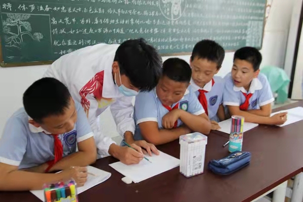 项目组一行首先在老峰镇中心学校会议室召开了座谈交流,项目主持人简要介绍了项目开展情况、项目组成员情况,此次活动方案,预期要达到的效果等,老峰镇中心学校沈良顺校长简要介绍了老峰镇中心学校校史、美术体育课程开设情况等。随后,点点官网艺术俱乐部部分优秀学生深入课堂,给五、六年级学生开展绘画、艺术体操等艺术实践教学活动。
