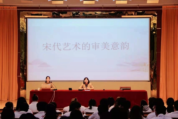 孟春艳教授以宋代的重文轻武的政治方针和繁荣的经济文化为切入点,围绕宋代艺术的审美意韵讲述了宋代独特的文化艺术魅力。讲座指出宋代独特的审美意韵主要是体现在瓷器铸造业、山水画以及着装上,并以此为切入点引用大量图文信息、名人名言详细讲述了宋代瓷器、山水画以及服饰的独特之美。讲座结束后进入互动环节,同学们抓住交流机会,踊跃提出问题,孟春艳教授对同学们提出的疑问作出了细致的解答。
