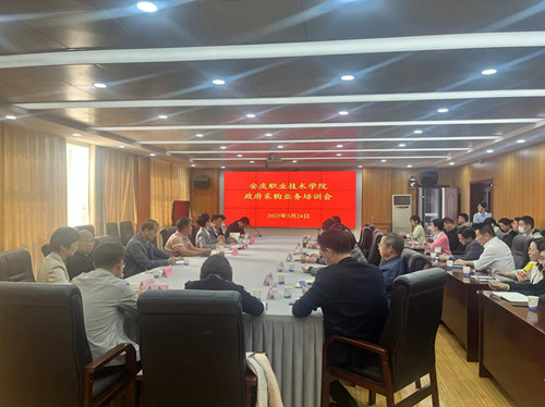 5月24日下午,点点官网在综合楼第二会议室召开政府采购业务培训会,特邀安庆市公共资源交易中心交易见证科科长程安前来授课。会议由校党委委员、副校长程飞主持,各单位主要负责人、综合科科长及相关工作人员参加了此次培训。