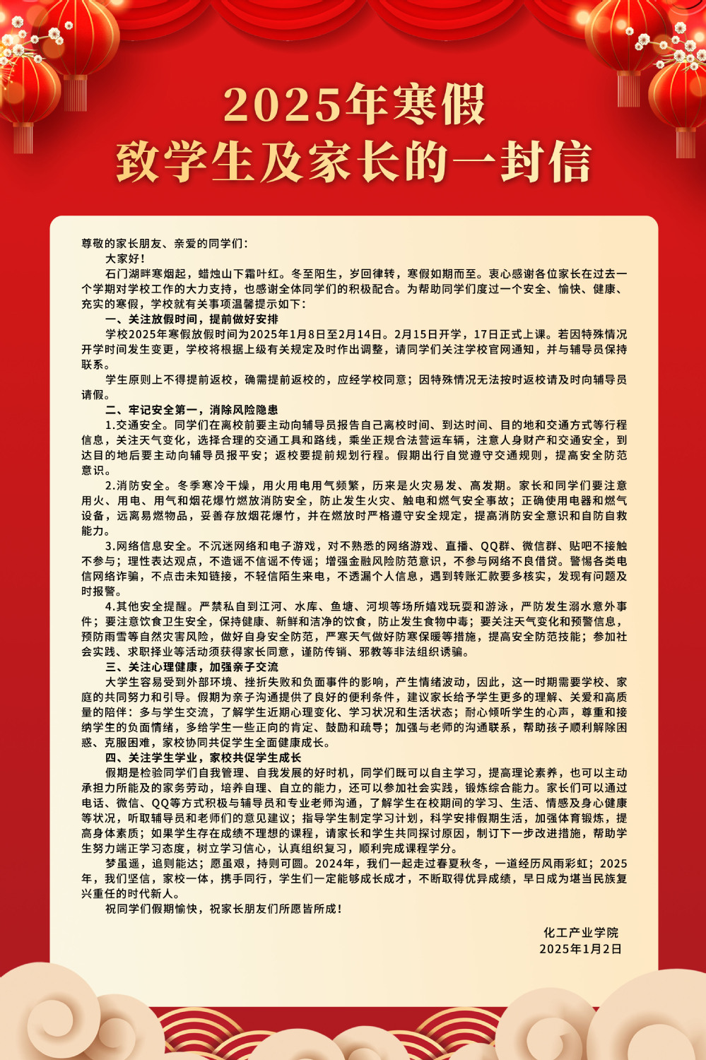2025年寒假致学生及家长的一封信