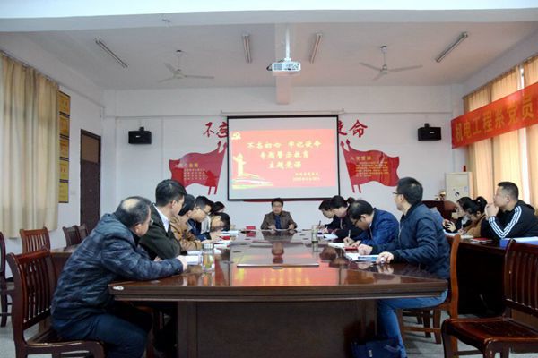 11月15日下午,机电工程系党总支负责人刘磊在1号教学楼208会议室为系全体党员开展“不忘初心、牢记使命”警示教育专题党课。系党总支副书记主持,全系党员参加。
