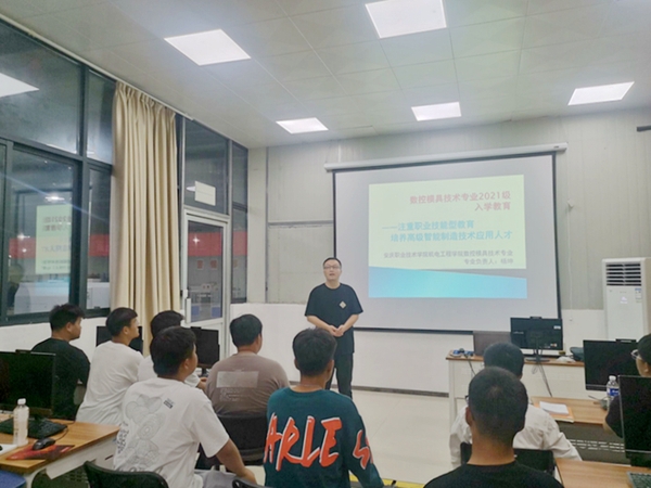 专业负责人就数控和模具专业的背景前景、就业方向、师资力量、教学条件以及学校的规章制度等向新生做了详细介绍,并从什么是数控与模具、为什么要学数控与模具以及怎样学数控与模具这三个方面,向2021级数控与模具专业的学生介绍了数控和模具专业的人才培养模式及人才培养目标。专业负责人还介绍了数控与模具专业的就业前景、企业所需数控与模具专业的人才类型、数控与模具专业人才岗位能力等内容,让学生们对数控与模具专业有了进一步地了解。整个入学教育活动中,同学们秩序井然,专心致志,认真撰写笔记,对所学专业充满了好奇和渴望。