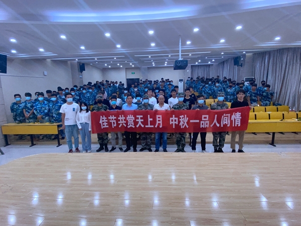 全体新生们积极主动,热情高涨,充分利用军训休息时间,自发组织了歌曲、舞蹈等节目,筹划了“你级我猜”、“成语接龙”等小游戏,学院为同学们准备了中秋月饼、饮料等。庆祝活动在一片欢乐的氛围中开展开来,全体新生与辅导员老师、军训教官共度佳节、其乐融融。