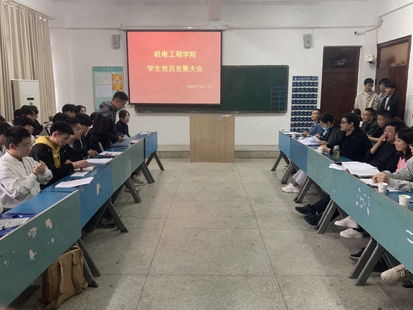 11月1日下午,机电工程学院在1栋教学楼111教室,召开党员发展大会,院学生工作负责同志和教学工作负责同志出席会议,全体党员发展对象培养老师参加会议。