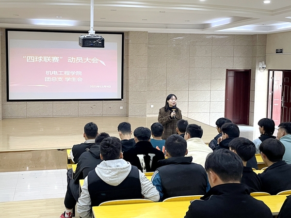 随着学校“四球联赛”比赛临近,为鼓舞士气,积极备战大赛,11月9日中午,机电工程学院团总支在216教室召开“四球联赛”动员大会,团总支负责人参加并主持会议。