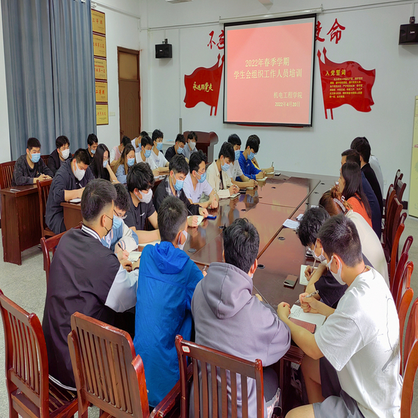 为深入推进学生会改革,进一步提高学生会工作人员的理论素养和实践水平,团结引领学生会组织成员永远跟党走、奋进新征程,以实际行动迎接党的二十大胜利召开,4月20日下午,机电工程学院团总支组织召开2022年春季学期学生会工作人员专题培训会。学院党总支副书记李承鹏、学院团总支书记、团总支副书记出席会议,学院全体学生会工作人员参加培训会。
