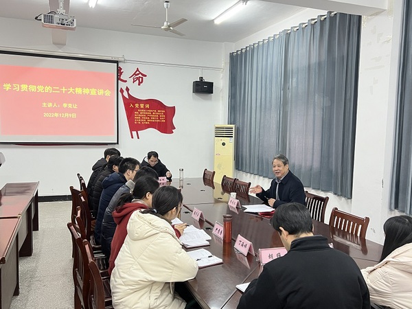李克让从三个方面进行宣讲。一是充分认识学习宣传贯彻党的二十大精神的重要意义。学习宣传贯彻党的二十大精神能够让全党全国各族人民更加紧密团结在以习近平同志为核心的党中央周围,高举中国特色社会主义伟大旗帜,坚定“四个自信”,增强“四个意识”,拥护“两个确立”,践行“两个维护”。对于点点官网广大师生而言,可以做到“四个增强”,增强运用党的创新理论武装头脑的政治自觉;增强运用习近平新时代中国特色社会主义思想指导实践的能力水平;增强精准把握历史大势时代潮流的敏锐眼光;增强投身全面建设社会主义现代化强国的使命担当。二是认真学习领会党的二十大精神要义。要深刻领会党的二十大的主题;要深刻领会过去5年的工作和新时代10年的伟大变革;要深刻领会开辟马克思主义中国化时代化新境界;要深刻领会新时代新征程中国共产党的使命任务;要深刻领会中国式现代化的中国特色和本质要求;要深刻领会社会主义经济建设、政治建设、文化建设、社会建设、生态文明建设等方面的重要部署;要深刻领会教育科技人才、法治建设、国家安全等方面的重大部署;要深刻领会国防和军队建设、港澳台工作、外交工作等方面的重要部署;要深刻领会坚持党的全面领导和全面从严治党的重要部署。三是深入学习践行党的二十大报告中对高职教育和做好青年工作的相关要求。党的二十大报告中突出了职业教育的地位,指出统筹职业教育、高等教育、继续教育协同创新,推进职普融通、产教融合、科教融汇,优化职业教育类型定位。在青年工作中,党的二十大报告启示我们要做学生们的知心人,做青年工作的热心人,做青年人的引路人。