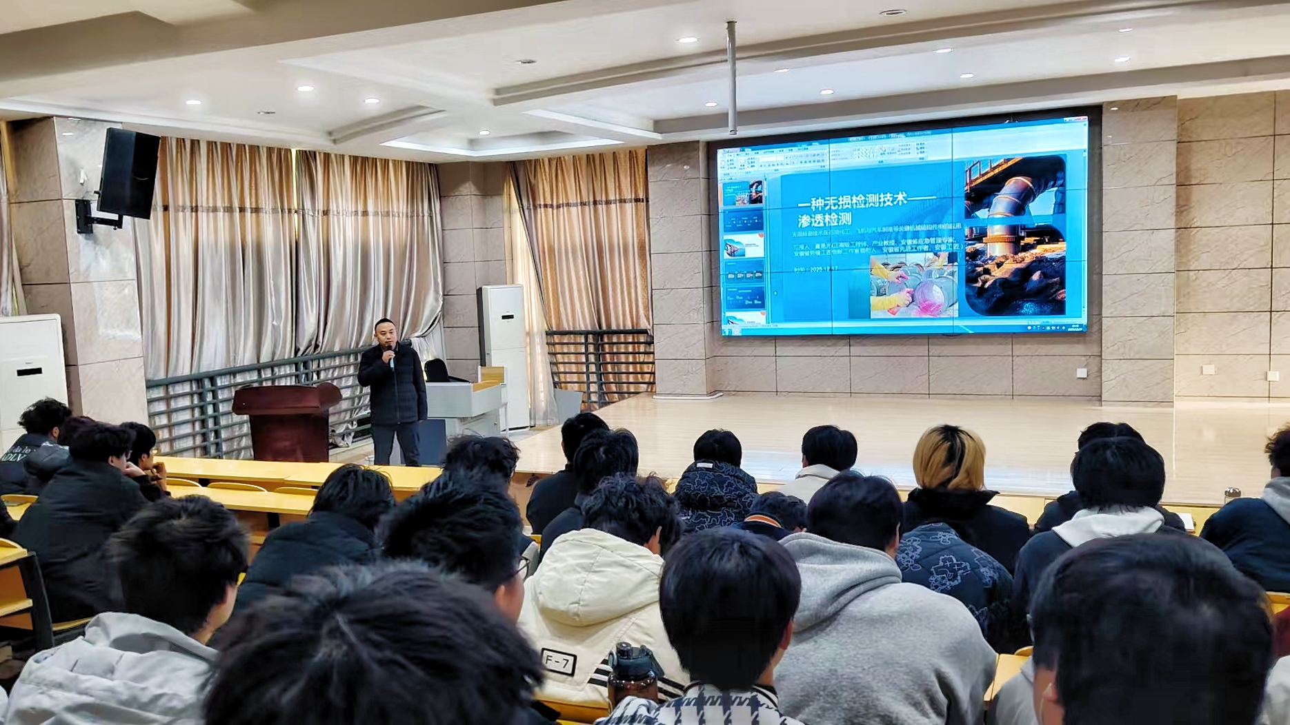 在讲座中,夏艳光博士以其丰富的专业知识和实践经验,从无损检测技术的发展历程、方法原理、应用场景等方面进行了深入浅出的讲解。他还亲自演示了无损检测的具体操作过程和技巧,让在场的师生对这一技术有了更加直观的认识。