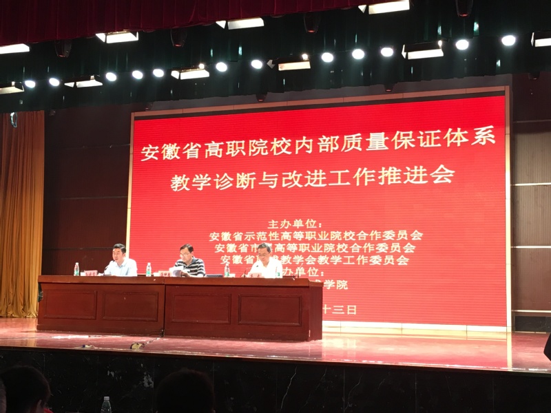 5月13日安徽省高职院校内部质量保证体系教学诊断与改进工作推进会在芜湖职业技术学院举行。省内74所高职高专院校的院(校)长、教学副院(校)长、教务处处长、质量办主任等相关人员200余人参加了会议。我院副院长谭维奇、教务处处长吴何珍参加会议。