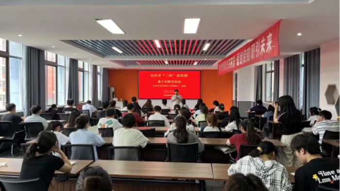 姚咏通过讲座教学引导同学们如何去理解《基于创新的创业》,新时代创业需要创业者打破原有思维、突破传统经营理念,通过自身的创造性活动引导新市场的开发和形成,在以后得创业道路上才能走得更好、走得更远。 “三师”进校园活动是安庆市人社局为贯彻落实国务院及省委、省政府保就业的决策部署、助力高校毕业生等青年群体就业创业的有力举措。安庆市积极调动“职业指导大师”“创业指导大师”“技能大师(劳动模范)”三支专业力量,开展多种类、多场次、多维度的“三师”进校园活动,为青年群体就业创业“加油”,为青年群体提供就业创业政策宣传和专业化就业指导服务,切实做到就业育人动心、就业指导入心、就业服务暖心、就业跟踪贴心,保持毕业生就业局势总体稳定。(文、图:雷远洪 审核:桂骏)