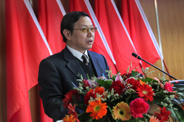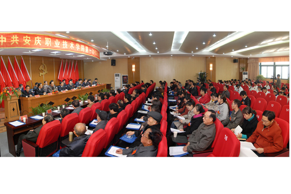 在主席台就座的有:中共安庆市委副书记陶方启,中共安庆市委常委、组织部部长汪卫东,中共安庆市纪律检查委员会副书记郭华平,安庆师范学院党委副书记殷红,安庆医药高等专科学校党委书记程学东,桐城师范高等专科学校领导占峰,安庆市教育工委副书记张泽水,安徽理工学校党委书记詹镜青,院领导江洪、孙晓峰、张旺牛、余祖文、施运华、毕明生、方天祜、姚尚庆。