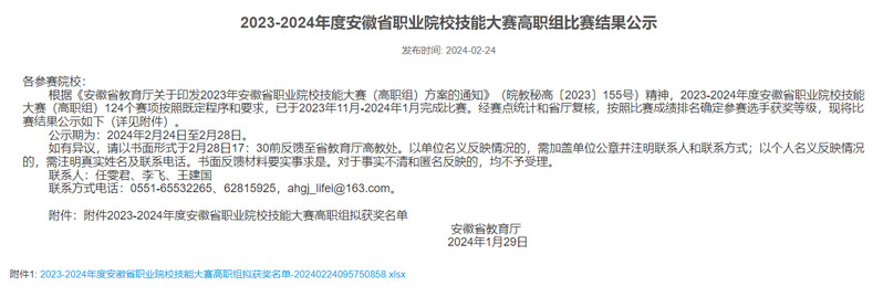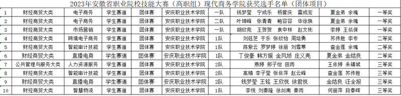 现代商务学院2023年安徽省职业院校技能大赛(高职组)获奖选手名单(团体项目)