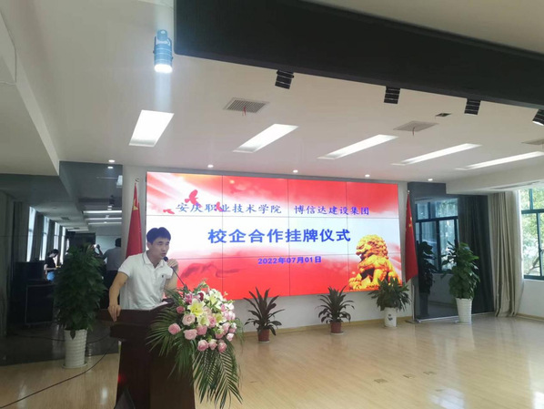 为进一步深化校企合作协同育人,7月1日下午,点点官网与博信达建设集团有限公司隆重举行校企合作揭牌仪式,校长毕明生教授、博信达建设集团有限公司董事长汪贤勇出席揭牌仪式,企业各职能部门负责同志、点点官网建筑工程学院负责人及相关教师代表参加揭牌仪式。