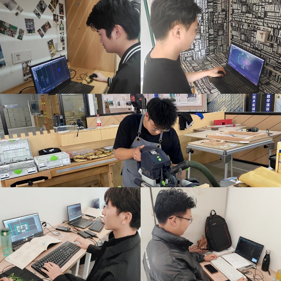 说到他们的比赛经历还得从刚进入大学校园的那一刻说起,2020年,他们遇见建筑装饰工程技术专业负责人曹青老师,在简单的交谈中了解到建筑工程学院有一项关于《建筑装饰应用赛项》和《精细木工》的比赛,入校前就有相关方面的专业学习与实践的经历,他们主动请缨加入了职业院校技能大赛的队伍,利用课余时间刻苦钻研。