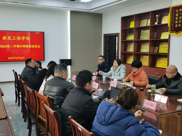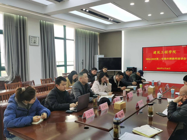 2月26日下午,建筑工程学院在1号教学楼514会议室召开新学期外聘教师座谈会,会议邀请学院本学期10位外聘教师、校质量办主任张铮、教务处副处长凌中水、教学督导许迪楼等人员参加,学院教学管理人员和专业建设负责人参加,会议由建筑工程学院陈月萍主持。