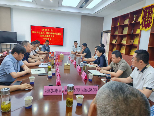 5月27日,望江县住房和城乡建设局副局长蔡新、望江县建筑业协会会长徐祖奇率队,组织望江县16家重点建筑企业负责人莅临我院开展“政行企校协同发展”专题调研交流。院党总支书记、院长陈月萍热情接待了调研组一行,安庆市建筑业协会秘书长杨军、院学生工作负责人、教学工作负责人及相关专业建设负责人参加交流。双方围绕建筑业当前面临的挑战与机遇、行业人才培养、产教融合等议题展开深入探讨,共绘建筑行业高质量发展新蓝图。