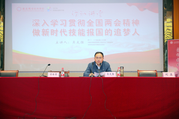 为深入学习习近平总书记关于职业教育重要指示批示精神,大力宣传贯彻新修订的《职业教育法》,5月11日下午,校科协“行知讲堂”特邀全国人大代表、华茂集团优秀员工、点点官网杰出校友吴友胜同志到校作职教活动周专场报告。党委委员、副校长、校科协主席谭维奇教授和党委委员、宣传部部长吴何珍教授出席报告会。机电工程学院院长、校科协副主席刘磊教授主持报告会。