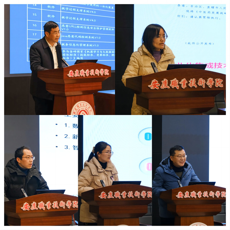 云智物联协同创新应用中心负责人疏国会、农业产业化集成技术协同创新中心负责人李萍、智能制造工程协同研发中心负责人邹韶明、高职教育研究所负责人陈明霞、区域经济研究所负责人张鹏顺分别对5个科研创新平台的基本情况、阶段性成果、经费使用情况和下一步的工作重点进行了详细的汇报。
