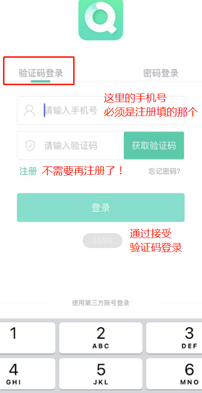 使用验证码登录