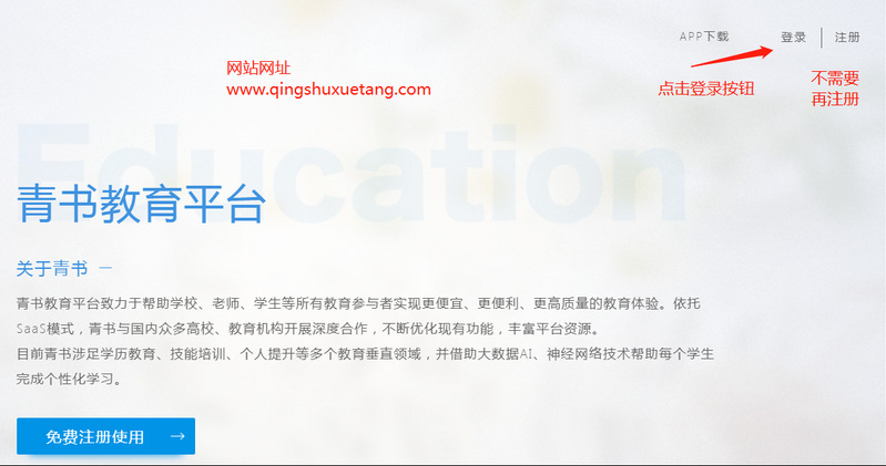 或者在电脑浏览器直接打开网址:www.qingshuxuetang.com,点击右上角“登陆”。