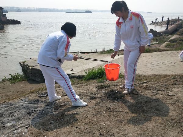 下午一点左右,志愿者们到达江畔沿岸,虽然从学院到江畔路途遥远,可志愿者们丝毫顾不上休息,他们三五人一组,分工配合,拿着铁钳和垃圾桶,沿长江江堤徒步2公里清理了江岸的白色垃圾和漂浮物。志愿者们弯着腰,用钳子捡拾长江沿岸的果皮纸屑、生活垃圾等,所到之处都被清理得干干净净。经过几个小时的努力,志愿者们在长江沿岸共捡拾垃圾十几桶,虽然疲惫,但是幸福。江岸的干净整洁和大家热枕的表现给安庆市增添了一抹和谐的色彩。