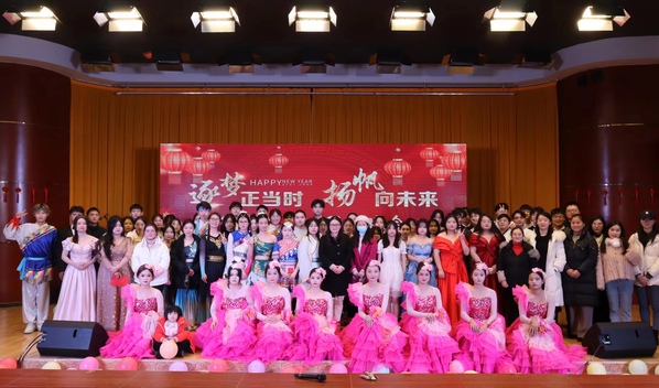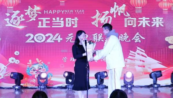 以“逐梦正当时 扬帆向未来”为主题的元旦晚会在舞蹈《我们的时代》中拉开帷幕。经典的《青花瓷》温润如玉,吟唱着动人的歌谣;舞蹈《家有儿女》勾起了对大家童年的美好回忆;诗歌朗诵《将进酒》带领大家跨越时间的维度,抒发了古人对于人生的思考;活泼欢快的《舞蹈串烧》勉励大家在青春的赛道上接力奔跑,勇毅向前;小品《互联网体检》、健美操表演《健美展体》、舞蹈《爱的华尔兹》、《民族舞串烧》、歌曲《山河图》等精彩纷呈的节目,洋溢着青春活力。莅临晚会现场的老师们也毫不逊色,与学生互动演唱歌曲,叶颖老师演唱的《芦花》与何旺老师的演唱的《听海》赢得了现场观众的阵阵喝彩,现场气氛热烈,将晚会推向了高潮。