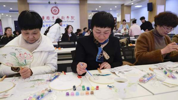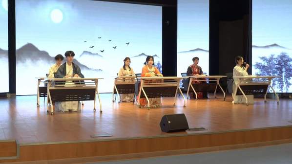 诗词是中华文化的瑰宝,经典诗词,吟咏着底蕴深厚的民族文化。学生表演的情景剧《诗词里的中国》,带我们穿越历史,品味古典文学中的精华。团扇是蕴含我国传统文化的一种特殊艺术形式,造型简约,现场的师生们手持团扇,蘸取颜料,体验着手工制作带来的快乐。通过巧手,一柄柄清新淡雅的团扇渐渐展现,大家纷纷举起亲手绘制的团扇合影留念。