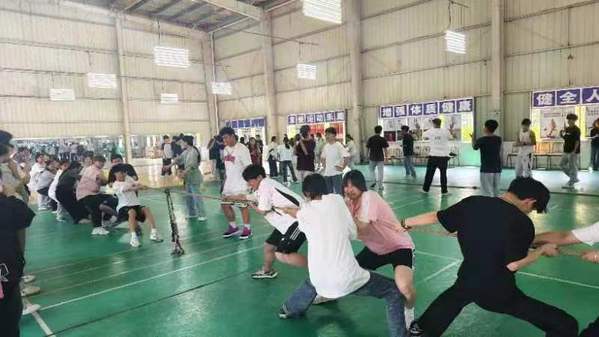 为提高学生的心理和身体素质,丰富校园文体活动,增强班级凝聚力,管理服务学院于5月10日中午在羽毛球馆开展了“5·25”心理健康月系列活动之一——凝心·聚力·扬风采拔河比赛。