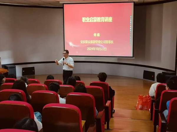 为更好地培养学生的综合素养,引导学生做好学崖和职业生涯规划,10月23日下午,管理服务学院邀请安庆联众旅游管理公司董事长何彪为2024级旅游管理专业新生开展了职业启蒙教育讲座。