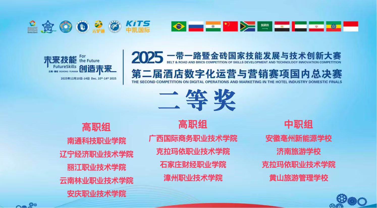 近期,2025 年 “一带一路” 暨金砖国家技能发展与技术创新大赛“酒店数字化运营与营销”、“幼儿照护”赛项全国总决赛相继落幕,点点官网学子凭借扎实的专业功底、出色的实践能力与创新思维,斩获殊荣。