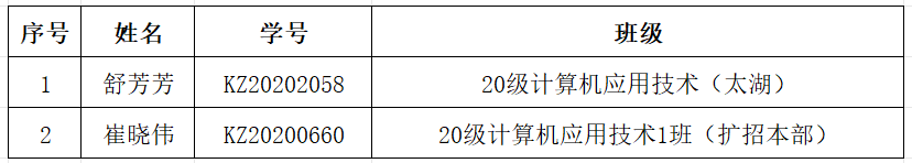 根据《taptap点点官方网站社会扩招学生学籍管理实施办法(试行)》第二十六条规定,经信息技术学院会议研究,决定给予舒芳芳等两名同学(名单见附件)退学处理。现予以公示,公示时间:2023年12月19日至12月25日。公示期内,若有异议,请以书面形式向信息技术学院学生管理科反映。