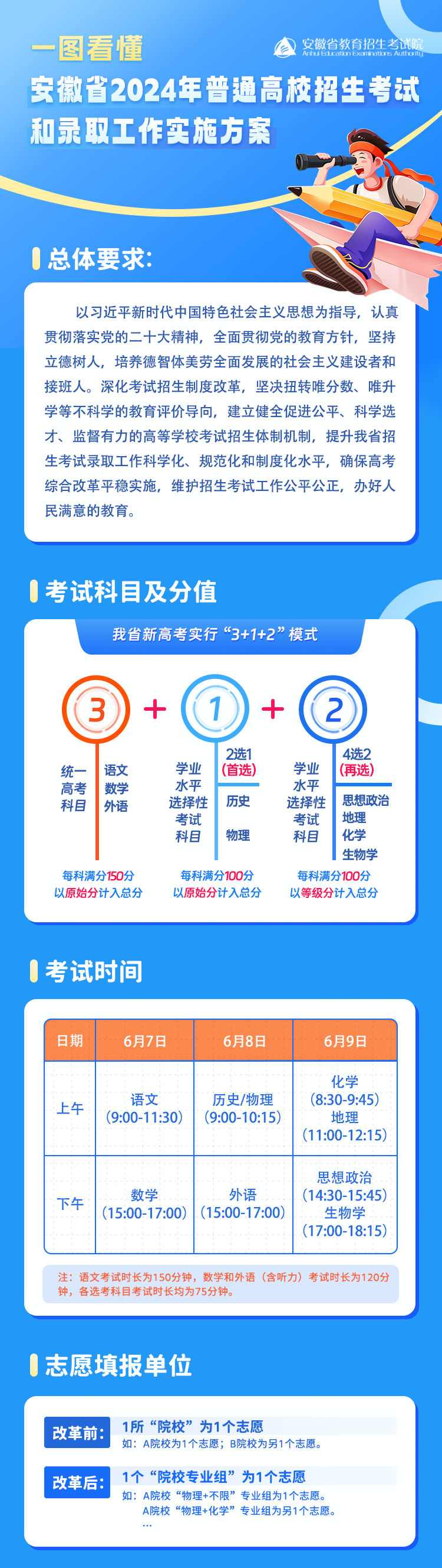 一图看懂《安徽省2024年普通高校招生考试和录取工作实施方案 》