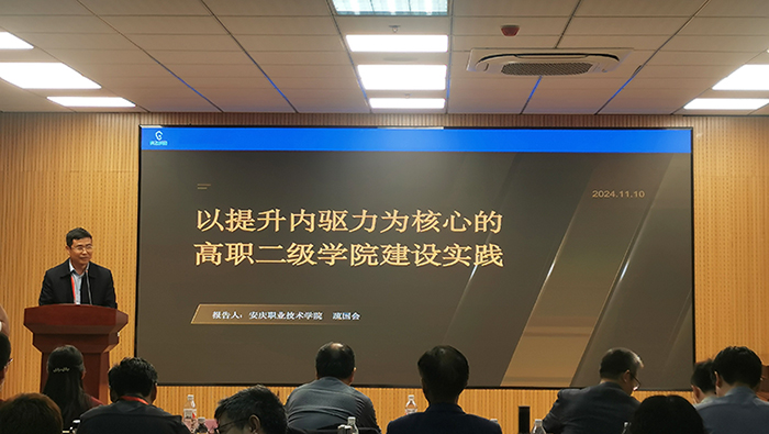 疏国会以《以提升内驱力为核心的高职二级学院建设实践》为题,详细介绍了信息技术学院在提升二级学院内驱力方面的创新实践和取得的显著成效。他强调,内驱力是学院发展的源动力,通过激发师生的内在潜能,可以有效提升教育水平和人才培养质量。报告介绍了信息技术学院在师资队伍建设、课程改革、教学方法创新、学习氛围营造等方面的具体做法。他还就如何构建有效的激励机制、提升教师教学热情、加强学院文化建设等问题,与参会者进行了深入探讨。