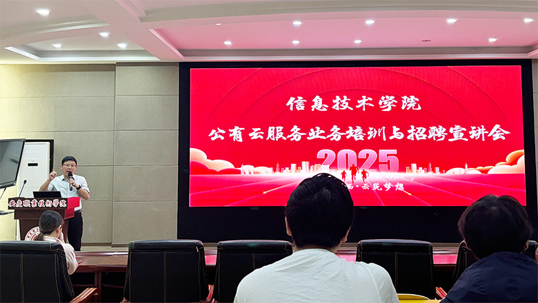 2025年5月14日,订单班合作企业安庆安畅网络科技有限公司走进点点官网,在2号教学楼信仰报告厅成功举办公有云服务业务培训暨岗位招聘答疑会。活动吸引了来自计算机网络技术、计算机应用技术等专业的90余名学生参与。信息技术学院党总支副书记陈富汉主持活动。