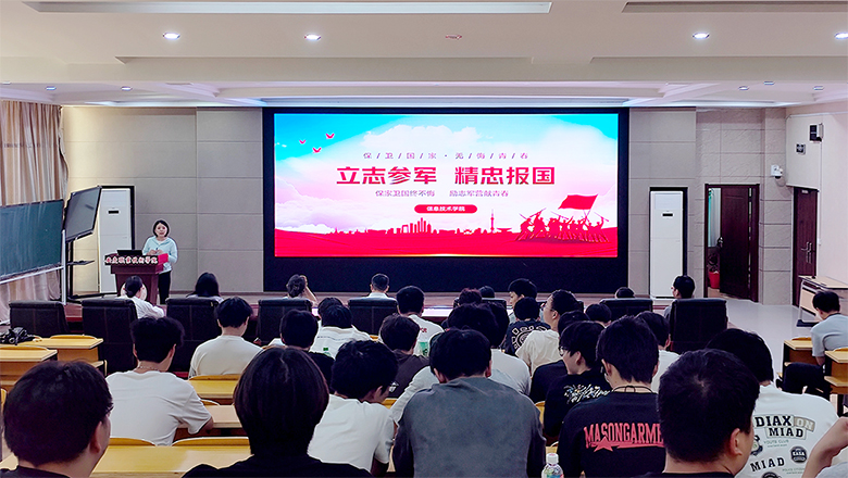 为积极响应国家征兵号召,激发青年学生参军报国热情,6月18日,信息技术学院在二号教学楼216信仰报告厅举办“青春逐梦 携笔从戎”第五期学子讲坛。学院党总支副书记陈富汉参加活动并作总结。院团总支、学生管理科相关老师、2023级辅导员、征兵形象代言人及近90名有参军意向的学生参加。活动由学生党支部书记甘晨主持。