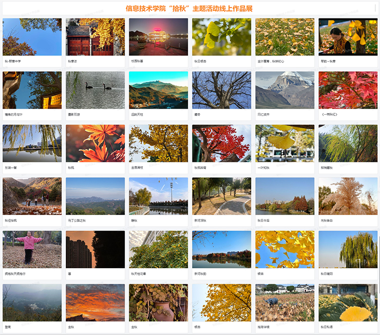 近日,信息技术学院分工会举办的“拾秋”主题作品展线上线下同步启幕。展览分为教师与学生两大板块,汇聚百余件风格多样、意蕴丰厚的作品,生动呈现了师生对秋天的艺术感知、情感寄托与创新诠释,在校园中勾勒出一幅浓郁的美育图景。