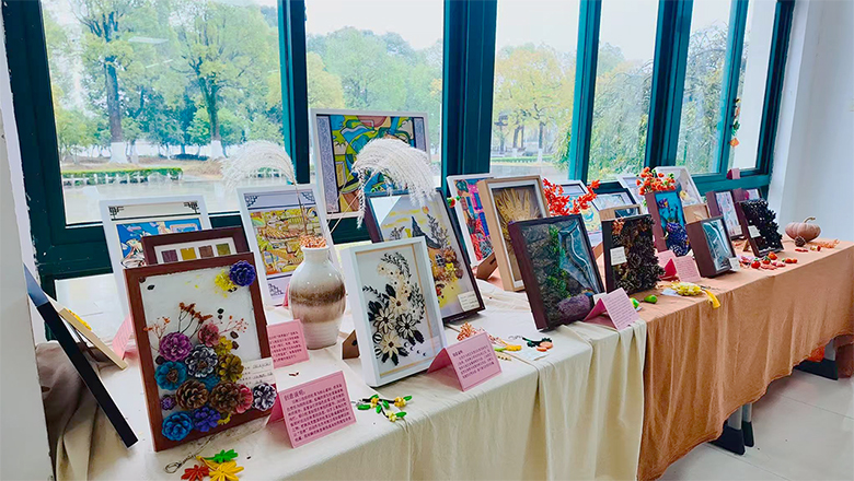 教师板块共征集78件作品,涵盖摄影、书画、手工、创意制作四类。摄影作品如《东湖一瞥》《墨影双游》捕捉校园秋光;书画类如油画《皖南秋韵》、版画《径上秋声》以笔墨渲染秋意;手工类《纸间秋拾》《橡果森林》融非遗技艺与自然材料于一体;创意制作如“体感智能小车”“智能密码箱”则彰显科技与艺术结合的学科特色。部分作品如《秋日私语》更将个人生命体验注入创作,情感真挚,引人共鸣。