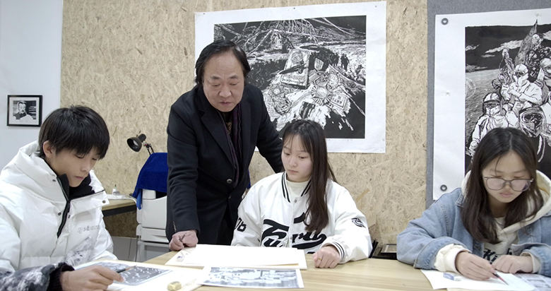 曹尚松大师在指导徽派版画创作