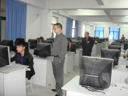 4月22日,实验实训中心认真组织了2012年全国助理电子商务师考试。经济贸易系92名考生在图文信息中心403机房,参加了网络使用、网络营销、电子交易三个模块的考试,学生认真作答,考场秩序井然,圆满完成了本次考试任务。(图:孙建萍) 领导巡视考试现场 实验实训中心 二O一二年四月二十三日
