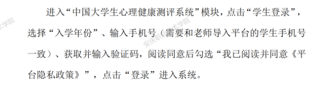 5.本次普查是2024级学生第二次普查,登录手机号是2024年9月第一次登录测评手机号。如有手机号更换或休学复学第一次参加测评的同学,请尽快联系辅导员在系统进行修改最新手机号登录。