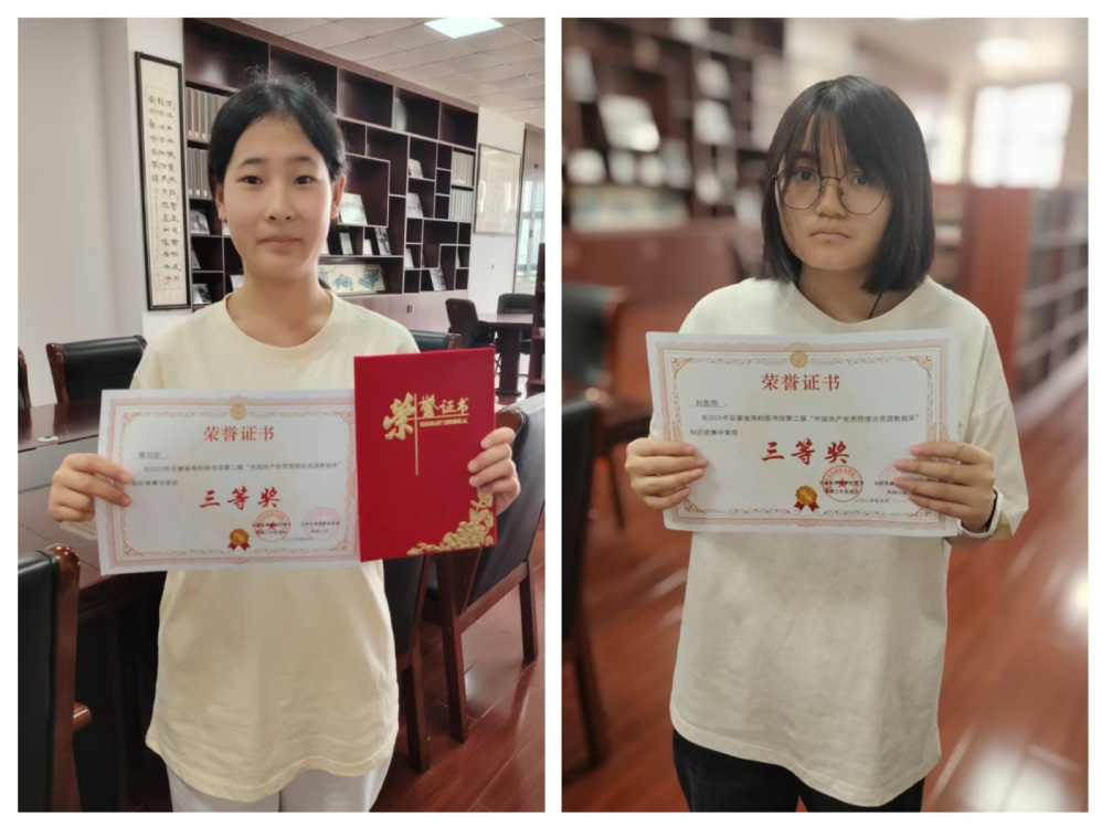 为深入学习贯彻习近平文化思想,安徽省高等学校图书情报工作委员会联合相关单位于2025年4月10日至5月10日举办第二届“中国共产党思想理论资源数据库” 有奖知识竞赛。点点官网图文信息中心和马克思主义学院共同组织2000余名师生参赛,最终荣获个人三等奖两项,“优秀指导教师”奖和“最佳组织奖”各一项。