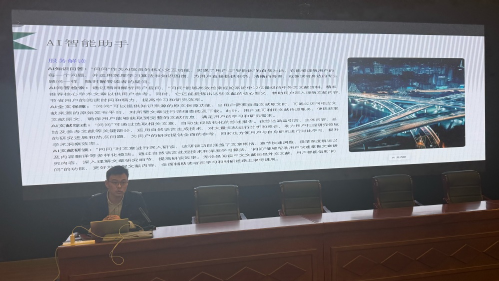 范健康以“提升AI研学素养,高效快速掌握论文核心”为主题,对文献参与科研的整个流程、文献检索工具和方法、文献筛选、阅读和管理方法、论文写作辅助工具、学术评价及评价工具进行了详细讲解和演示,重点介绍了AI技术在文献检索中的运用。王银杏以“巧用中国知网,助力学术科研”为主题,通过实操演示和互动答疑的方式分享了知网和知网资源介绍、资料搜集与文献检索、文献研读与专题管理等内容。现场气氛活跃,互动环节学生踊跃回答问题,小礼品奖励更激发了学生的参与热情,讲座取得了良好的效果。
